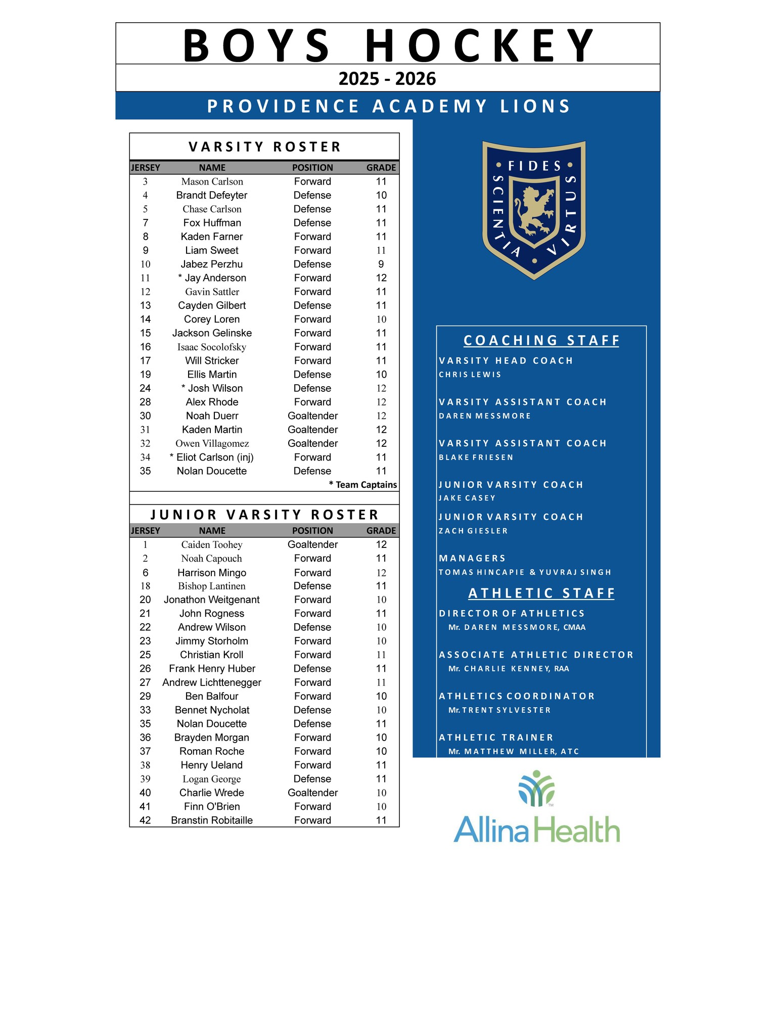 Boys Hockey Roster